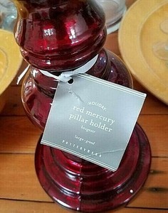 Details About Pottery Barn Red Mercury Glass Large Pillar Candle Holder 21 5 H New