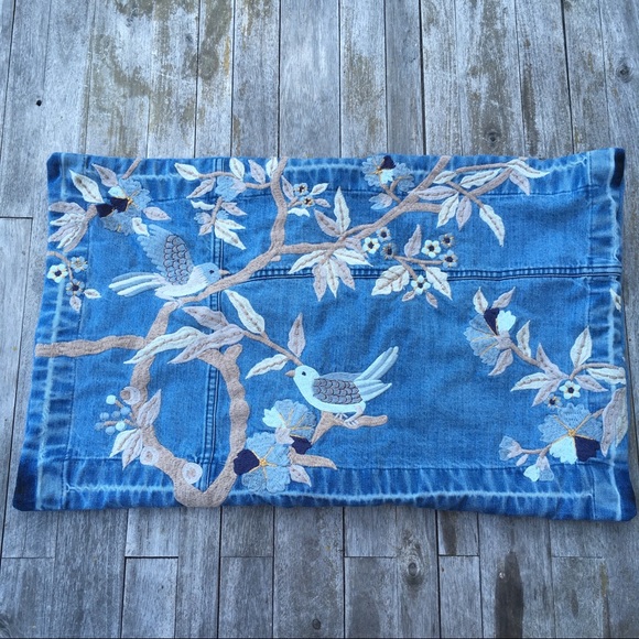 Pottery Barn Denim Lumbar Pillow Embroidered Jean
